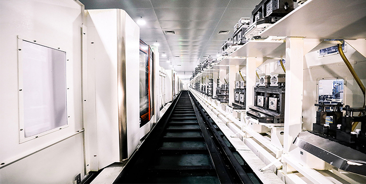 FMS柔性生产线,由6台机床组成:柔性生产线是将多台机床联结起来,配以自动运送装置组成的生产线